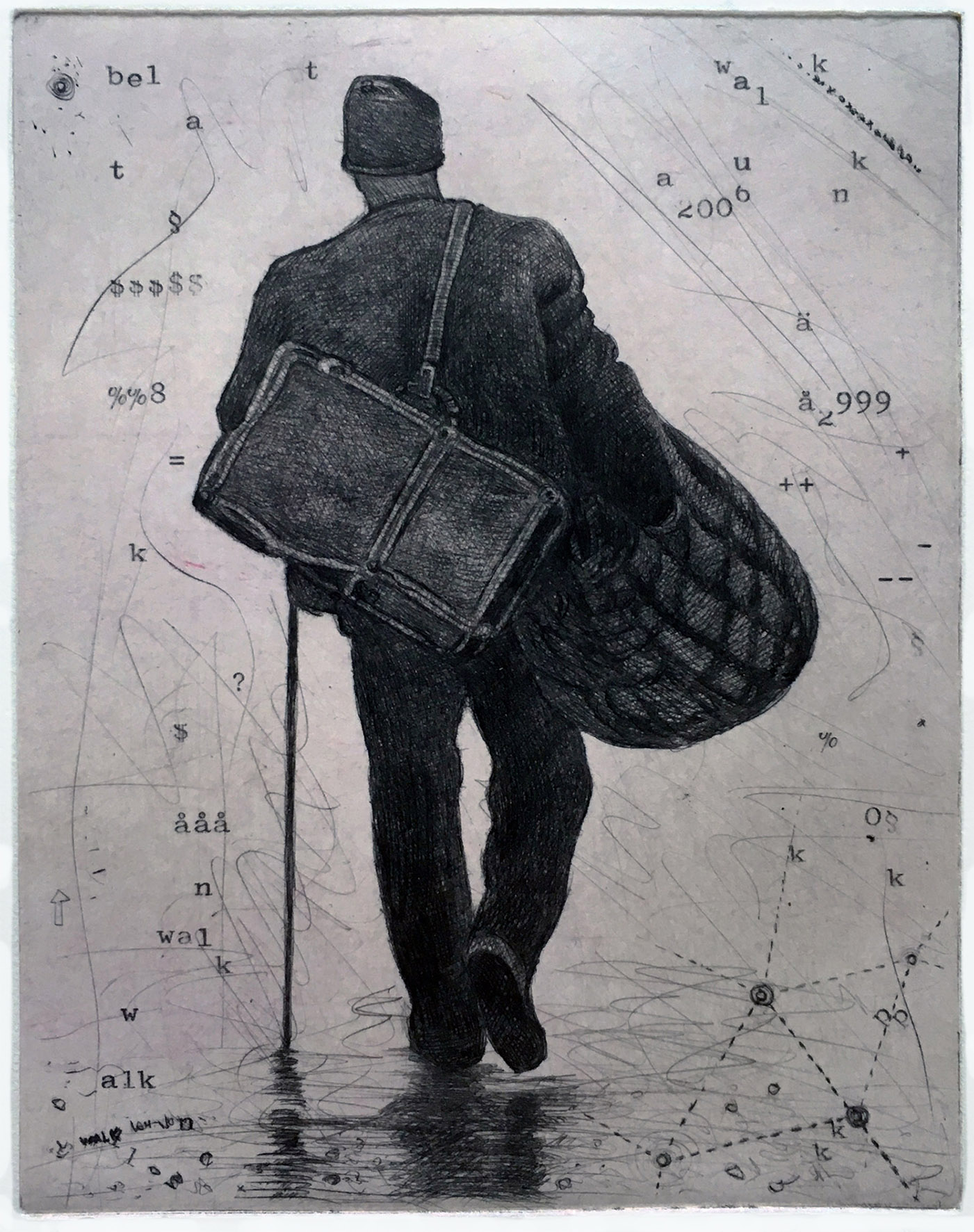 Mikael Kihlman har strövat genom städer och fångat platser och situationer som har gjort intryck på honom. Hans torrnålar är minnesfragment samlade från Stockholm och andra länder under många års vandringar.