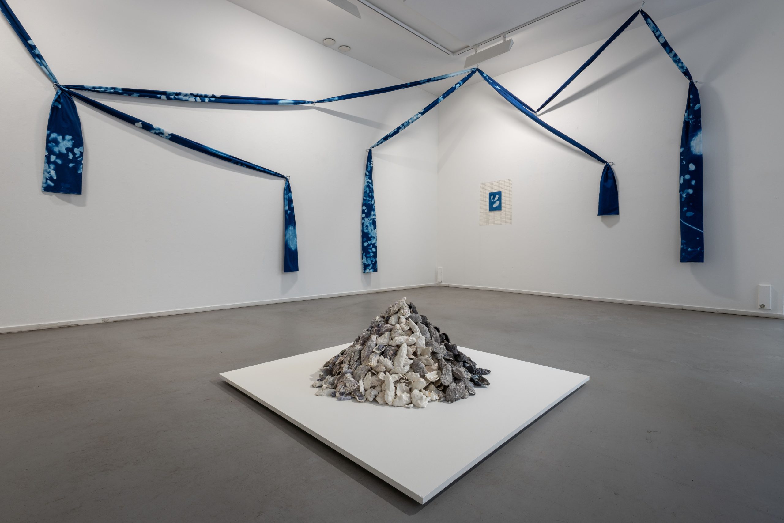 In Scotland, Harriina worked with calcium carbonate–rich oyster shells, using them in ceramic glazes and in sculptures designed to fertilise soil. In New York, she participated in oyster reef restoration and produced cyanotype prints in field conditions. The exhibition examines oysters both as organisms that shape their environment and as historical and cultural material archives. Biological, industrial, and conceptual dimensions intersect, and the boundary between life and death becomes blurred.