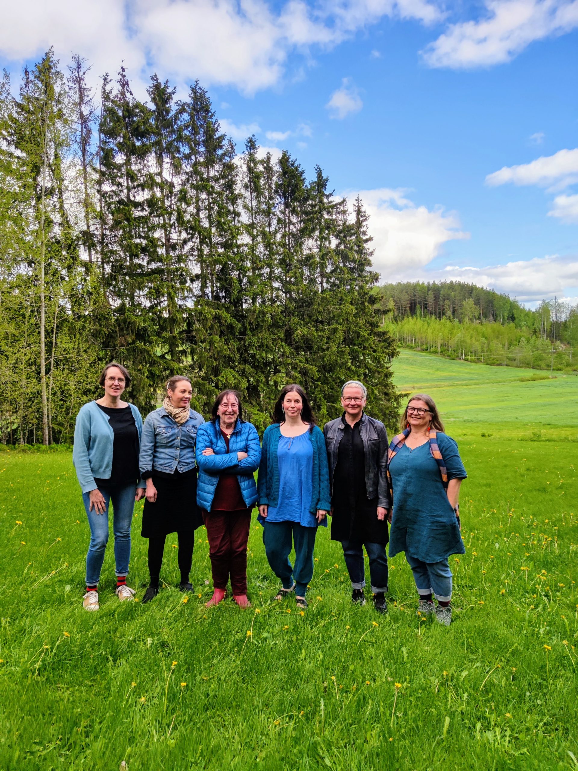 Taiteilijat yhteiskuvassa vasemmalta: Maija, Beata, Inari, Laura, Pilvi & Metta. Vesikansa, 26.5.2023