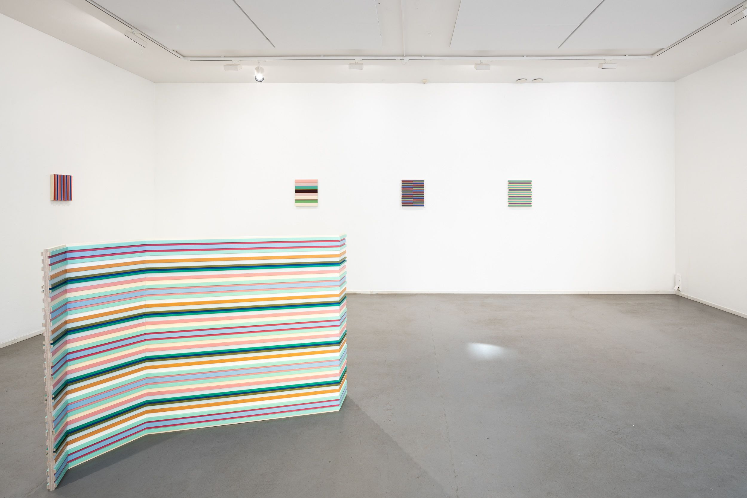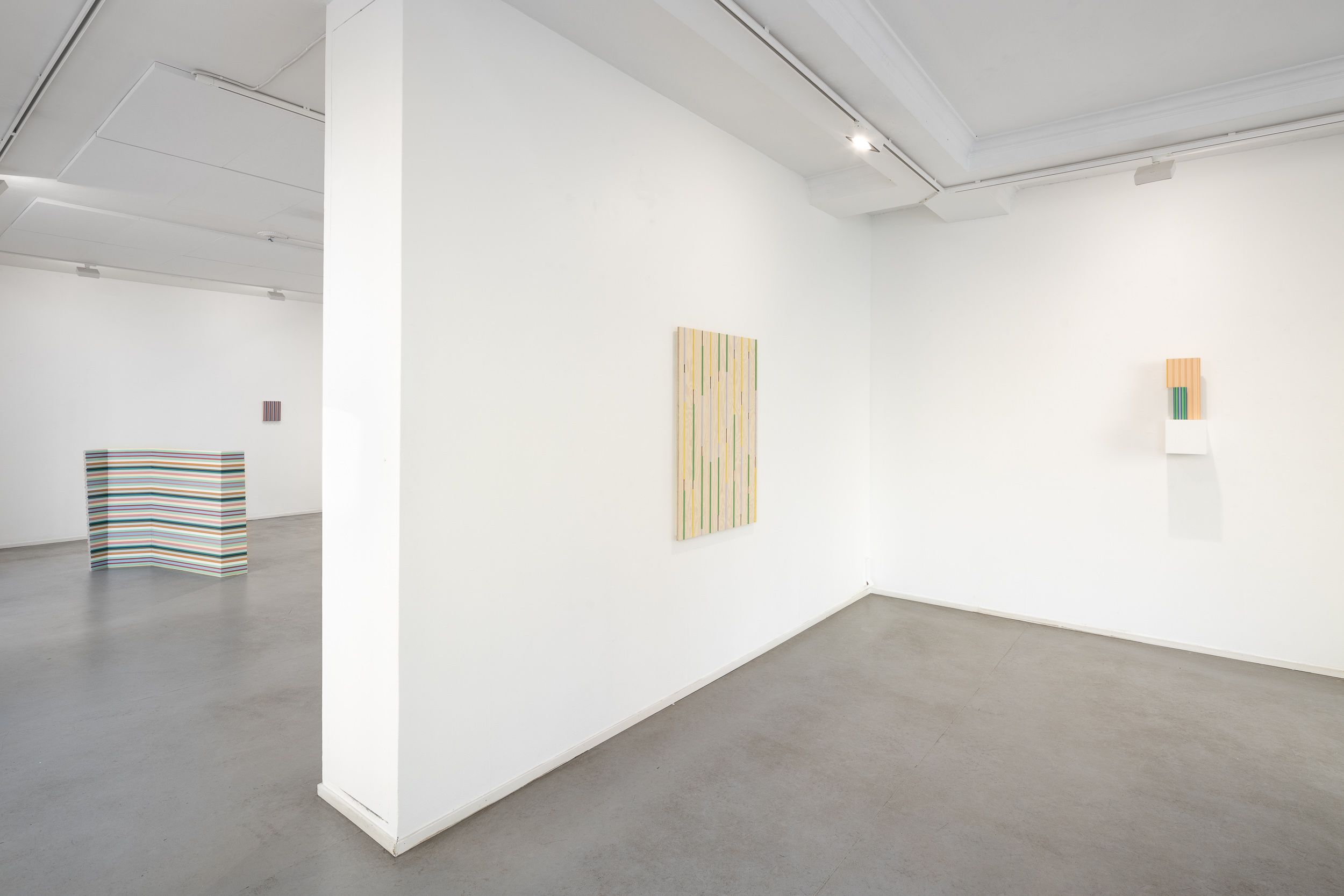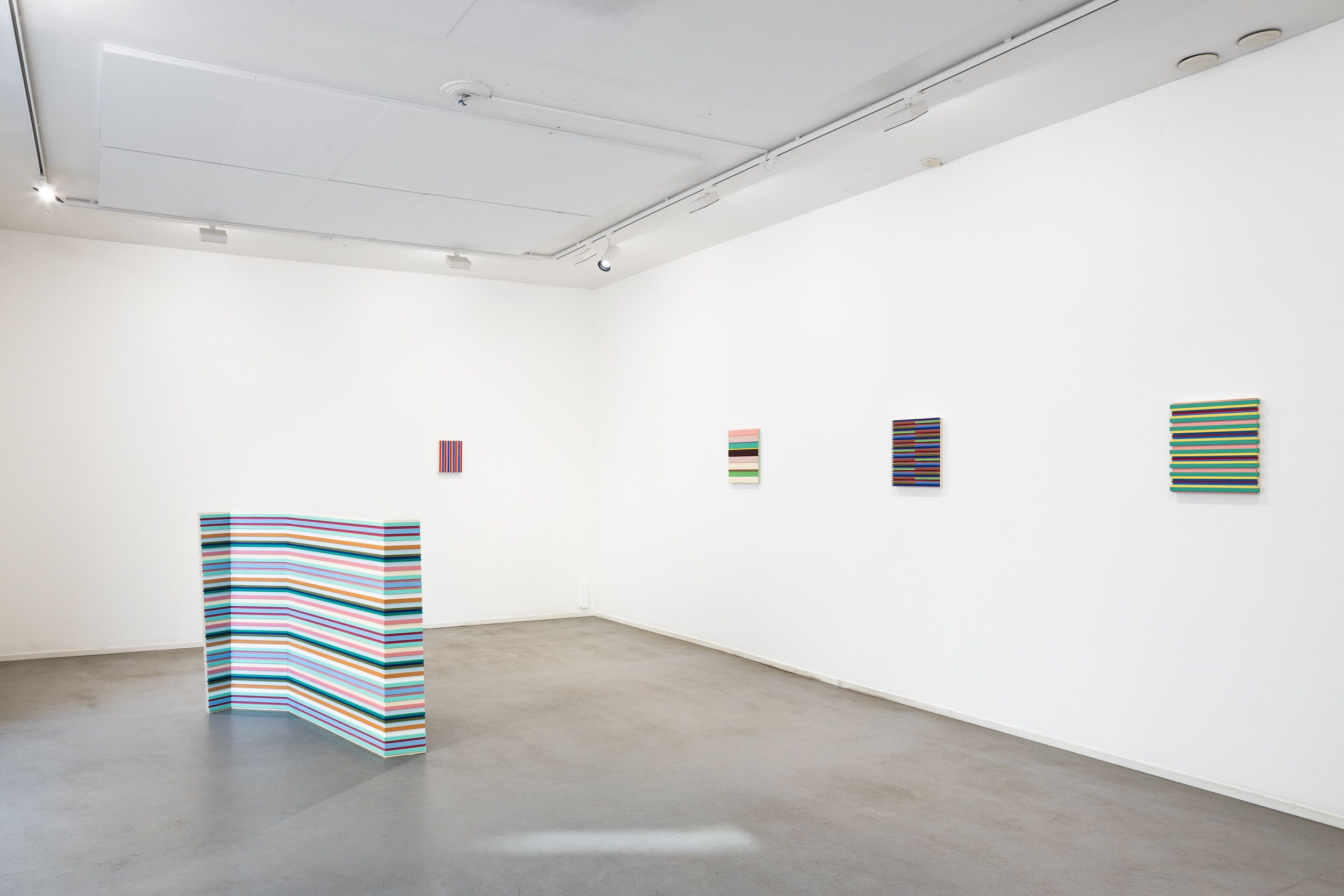 Tässä näyttelyssä visuaalisuuden lähtökohtana ei ole ennalta rajattu järjestelmä vaan pikemminkin teosten rakenteelliseksi yksiköksi valikoitunut viivamainen puurima. Olen haalinut työhuoneen täyteen erilaisia puurimoja, maalannut niitä eri väreillä, sahannut rimoja erimittaisiksi paloiksi, muokannut hiomalla ja hiljalleen alkanut sovitella materiaalia teoksiksi. Työskentelyni on ollut profiileiltaan ja väreiltään erilaisten rimojen järjestelyä, yhteen liittämistä, osiin pilkkomista ja taas uudelleen organisoimista. Joidenkin teosten pohjana olen hyödyntänyt vanerilevyä, joihin on jyrsitty rimoille sopivat urat. Itselleni nämä alustoille toteutetut teokset vertautuvat rakenteensa myötä kohopainolaattoihin tai kudottuihin kodintekstiileihin.