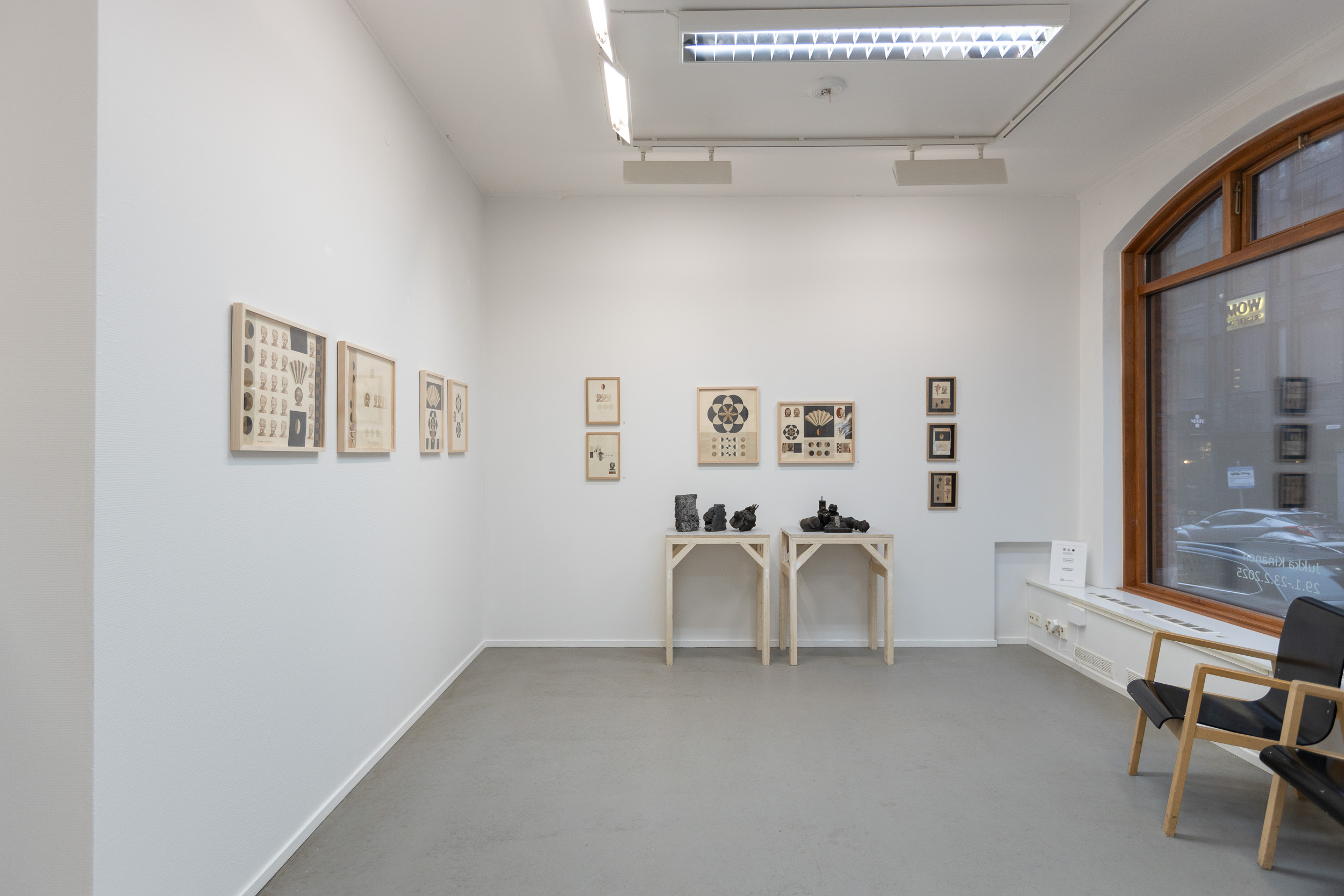 Studiotilan kuvat Jukka Kinasen näyttelystä helmikuussa 2025, kuvaaja Aukusti Heinonen